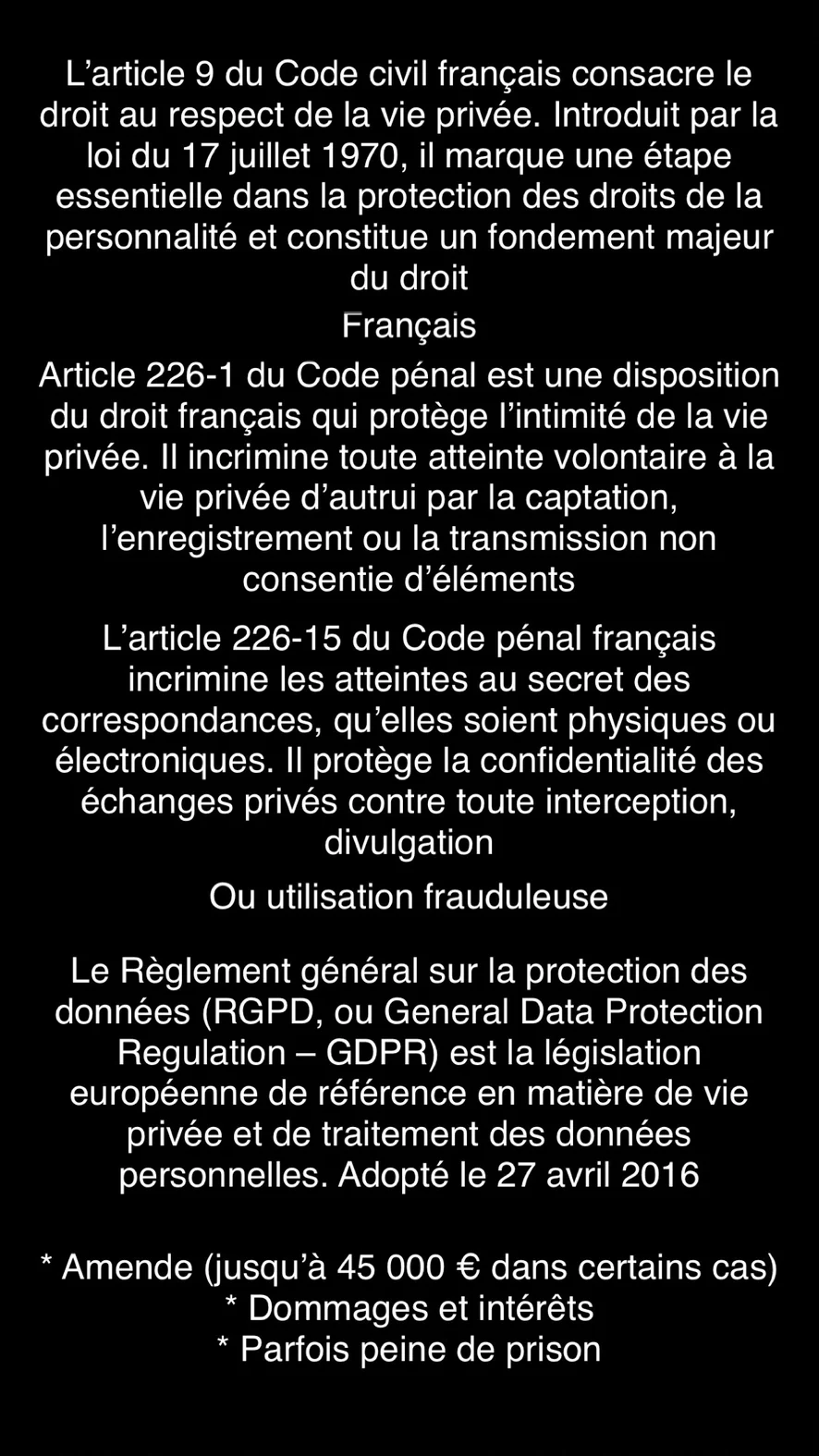 Toutes personnes ayant étais en possession de mon contenue, ayant fait « SCREEN SHOOT » sans mon accord fera l’objet d’une poursuite.